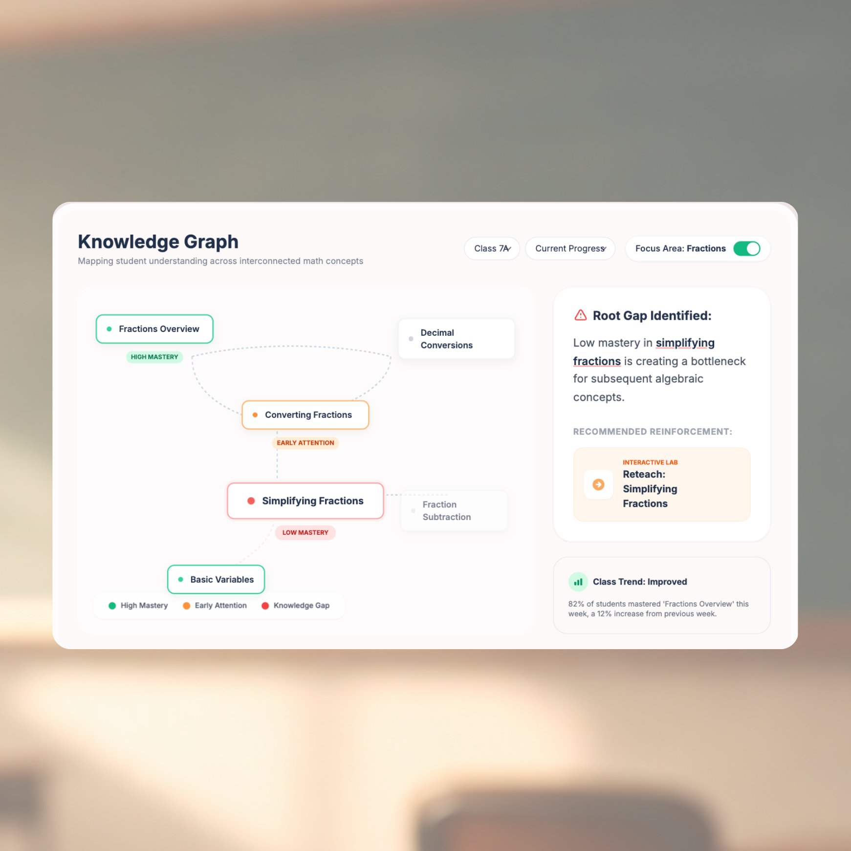 | Learning Gap Visibility | Topic-wise learning gaps become visible across the class within days of assessment completion1 Insights are generated based on completed assessments and available response data. | Gaps become visible after periodic tests or term exams. |